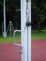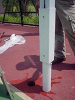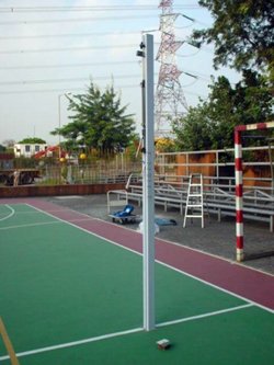 鋁制排球柱 V-2A 用料:方形鋁柱,白色 調較高度比傳統排球柱自由度更大,重量比鐵制排球柱大幅減輕 搞手比傳統排球柱更安全,往往傳統排球柱容易被回彈中的威也彈傷 高度調較 : 2050,2150,2200,2240,2250,2300,2350,2430CM 柱身直徑 : 80mm x 80mm